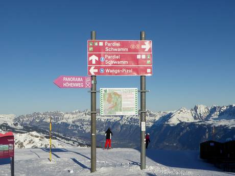 Skigebiete mit der besten Orientierung (Pistenplan, Informationstafeln, Ausschilderung) im Heidiland
