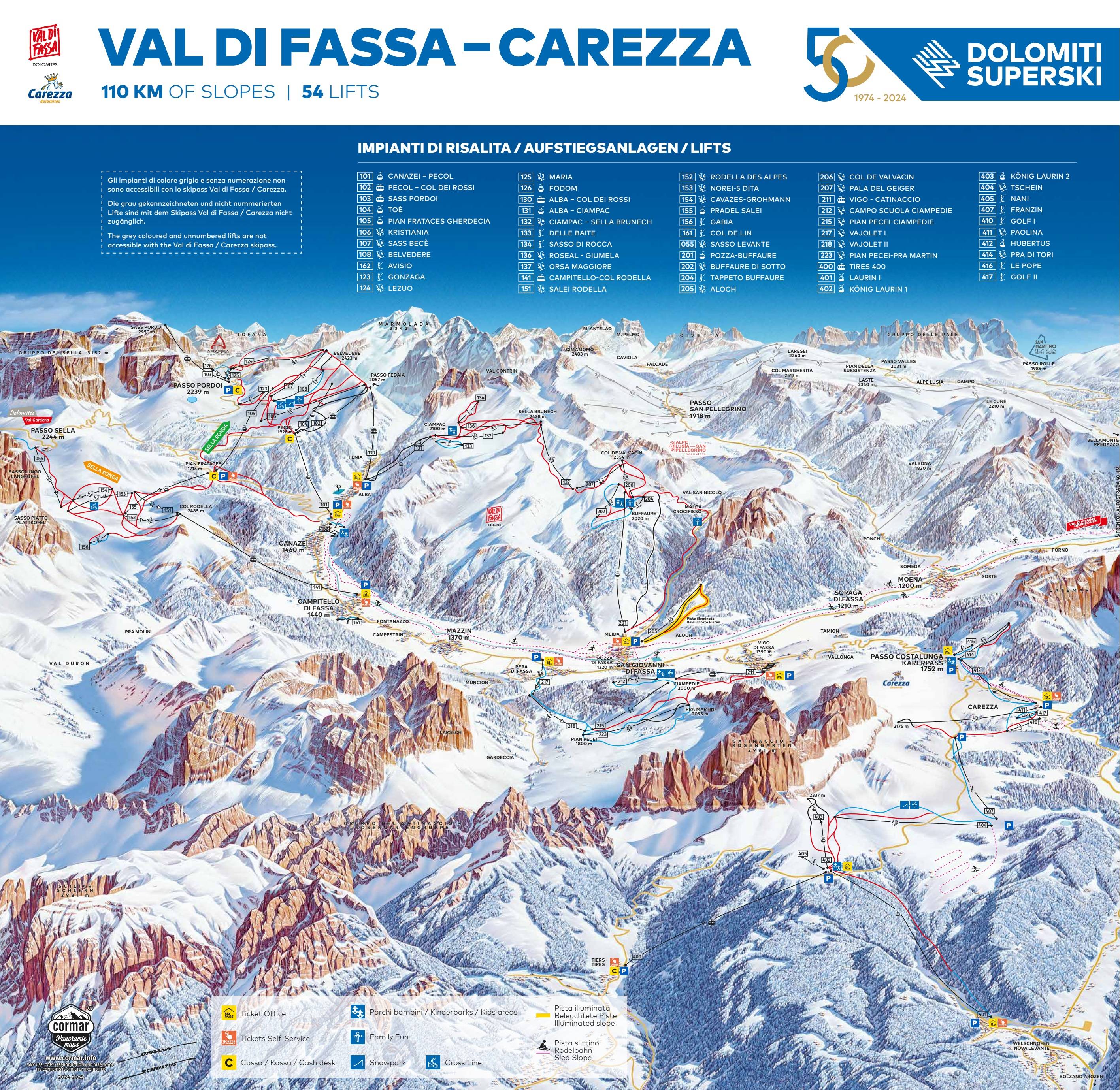 Pistenplan Val di Fassa | Carezza (2024/2025)