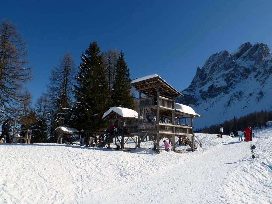 Die zwei Tellerlifte Waldheim sind ideal für die Kleinen. Hier gibt es neben einem Abenteuerparcours auch leichte Pisten und Förderbänder. Die Skiwiese liegt auf der andern Seite von Sexten und ist nicht direkt an den Pisten vom Skigebiet gelegen.