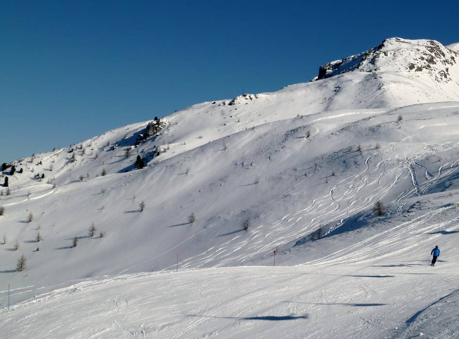 Die Holzriese 2 Piste ist mit 72% Neigung die steilste Piste Italiens.
