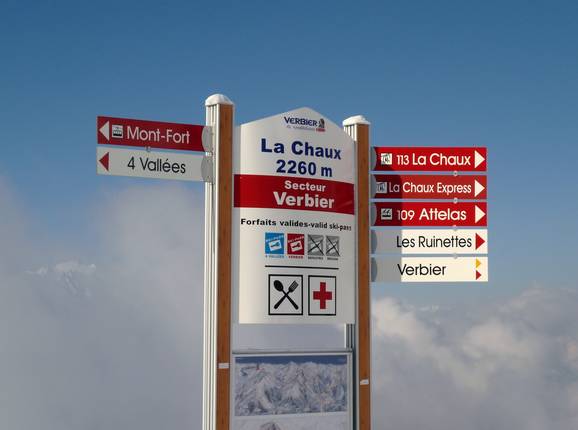 Orientierung (Pistenplan, Informationstafeln, Ausschilderung) und Sicherheit im Skigebiet 4 Vallées – Verbier/La Tzoumaz/Nendaz/Veysonnaz/Thyon