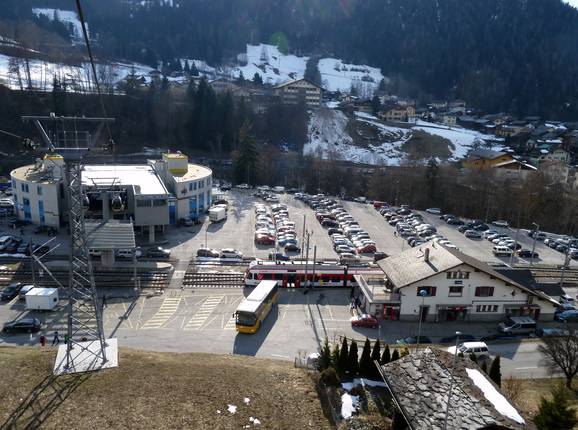 Gegenüber vom Bahnhof Le Châble startet direkt die Gondelbahn Le Châble ins Skigebiet. - Skibusse