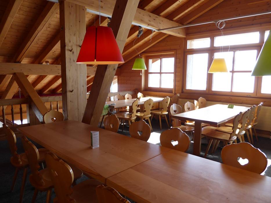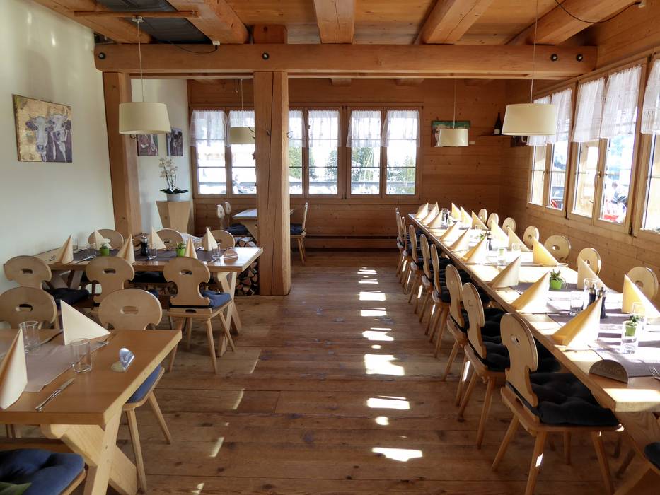 Die Standhütte bietet eine urige Stube mit bedientem Panoramarestaurant und eine wirklich traumhafte Sonnenterrasse mit Panoramablick auf die Walliser Bergwelt in Lenk. Sehr kuschelig und gemütlich. Gleich nebenan und unter gleicher Führung gibt es ein modern und schlicht gestaltetes Selbstbedienungsrestaurant mit großer Terrasse.
