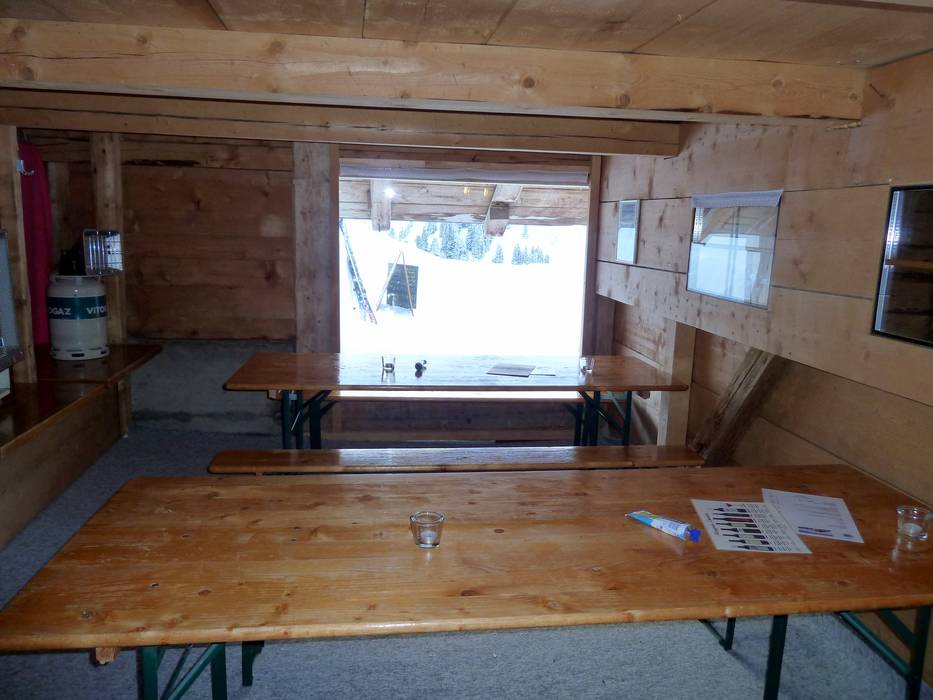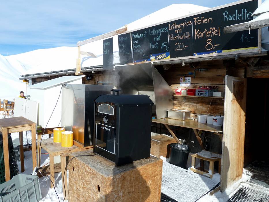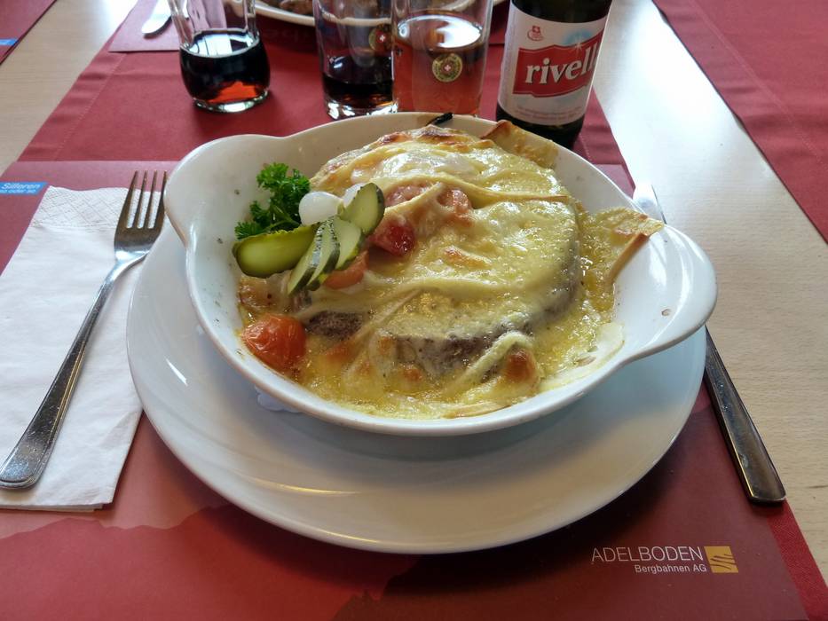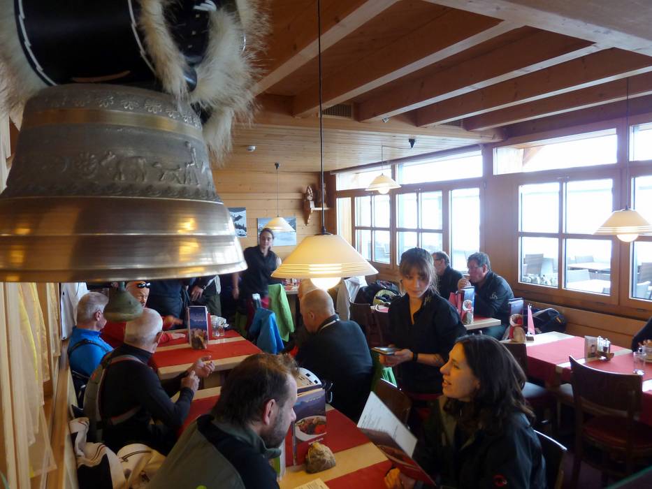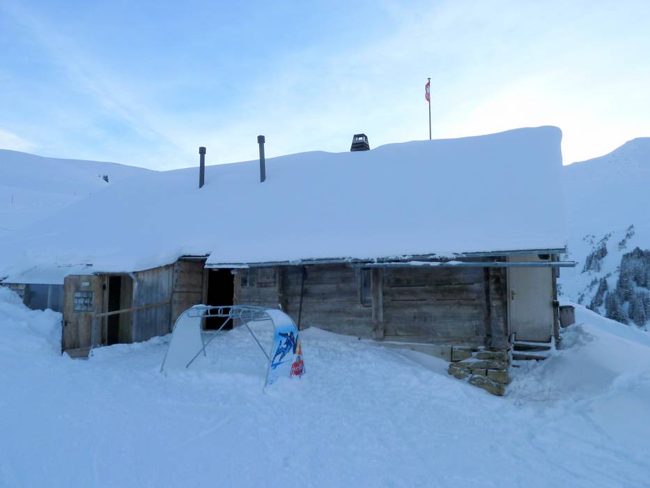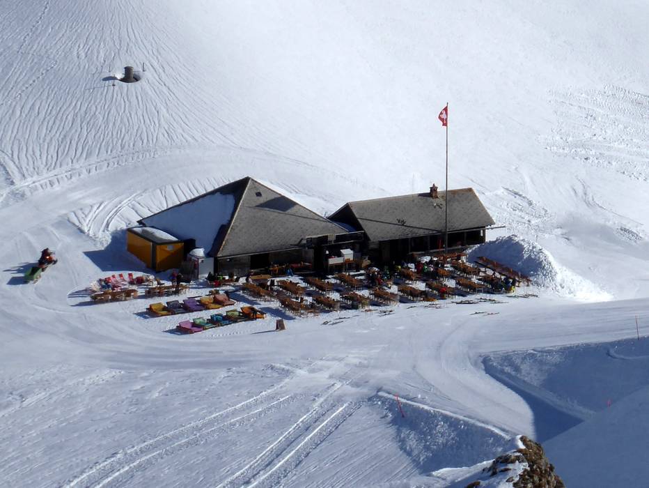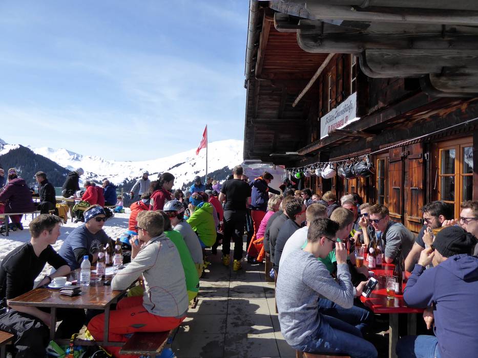 Mehr Bergbeizli als Restaurant kann man sich in dieser urgemütlichen Hütte mit Schweizer Klassikern wie Käseschnitte oder Fondue sehr gehaltvoll stärken, um sich dann auf die schwarze Weltcup-Abfahrt zu wagen.