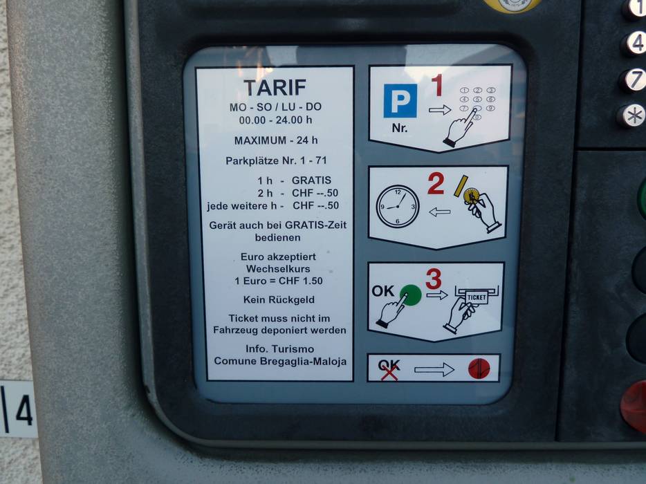Die nächste Autobahn ist 67 km entfernt. In Maloja muss man ab der 2. Stunde für das Parken bezahlen.