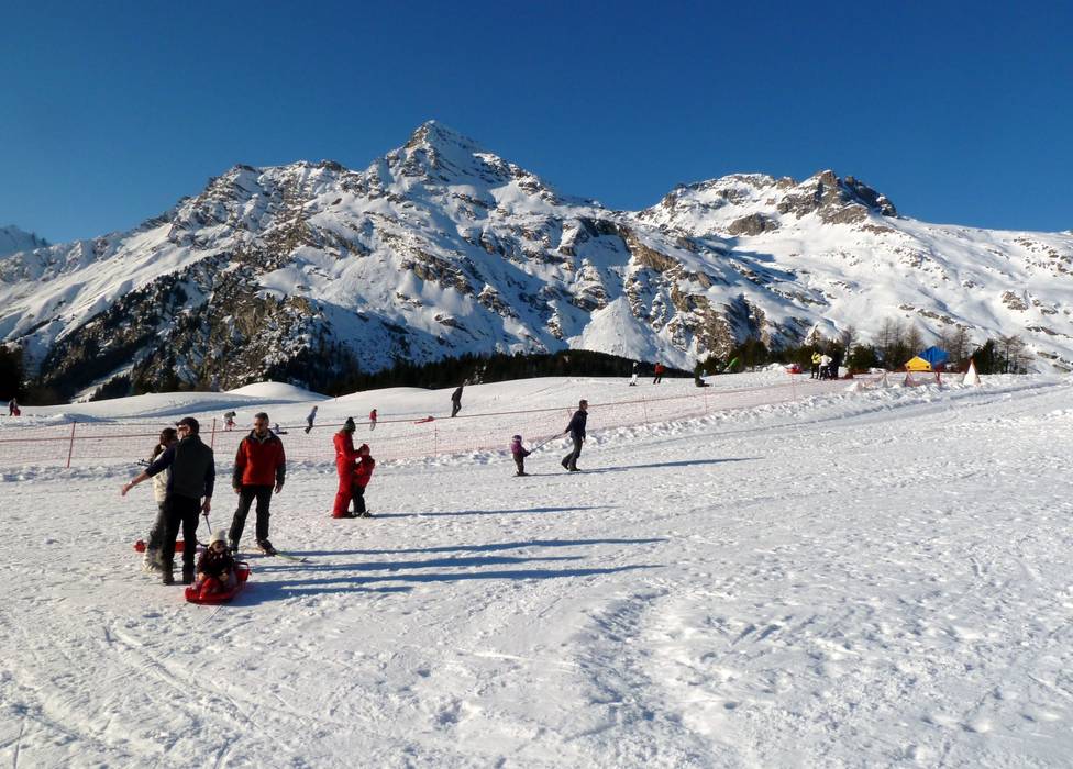 Familien fühlen sich im Kindergelände Maloja sehr wohl. Snowtubung, eine Schlittenbahn und ein Eislaufplatz runden das Angebot ab.