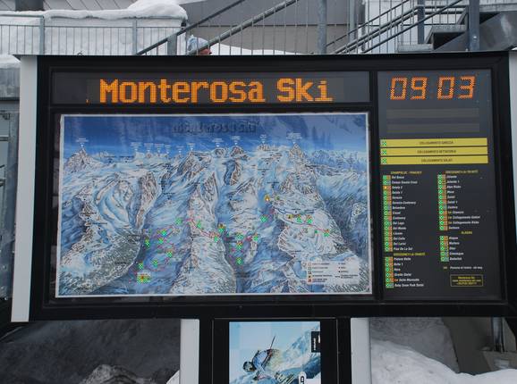 Der Pistenplan legt den Fokus sehr auf die Darstellung der grandiosen Monterosa-Gruppe, wodurch das eigentliche Skigebiet etwas zu klein dargestellt wird.