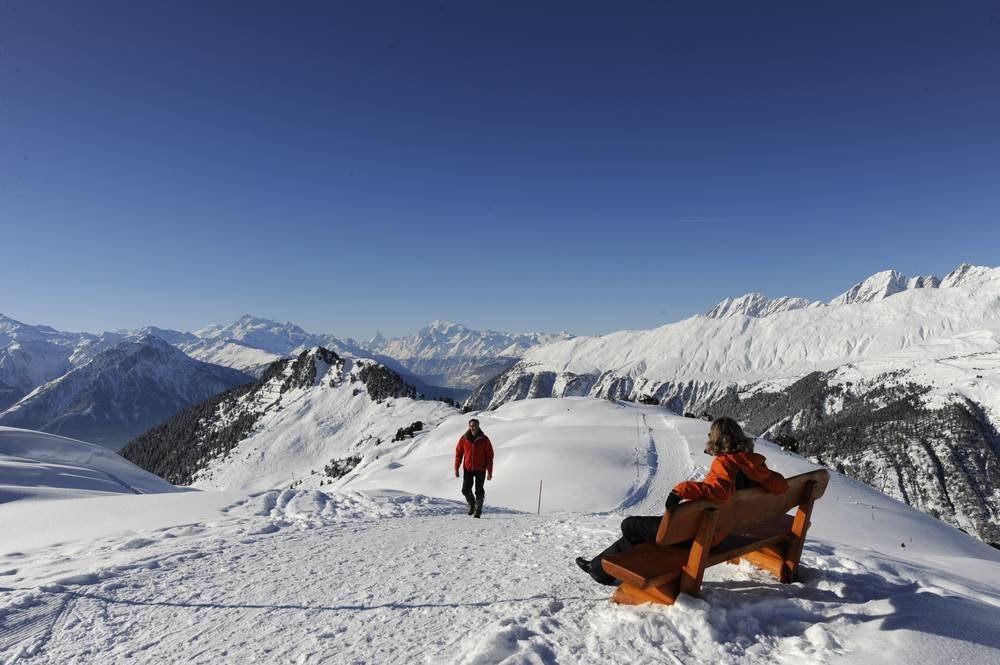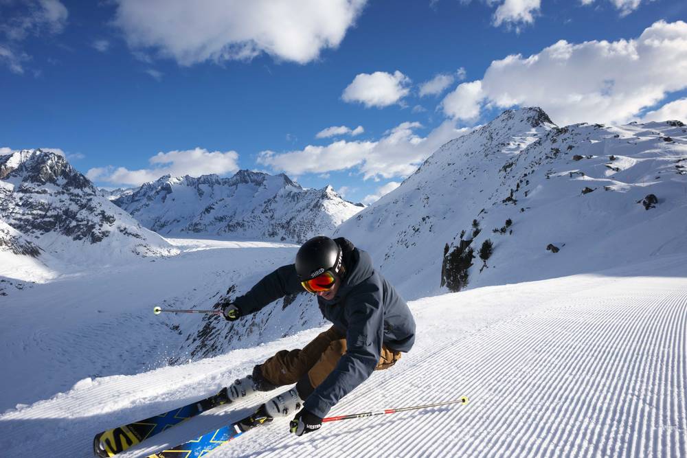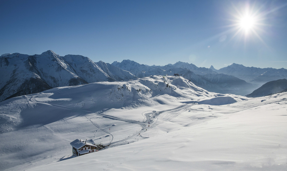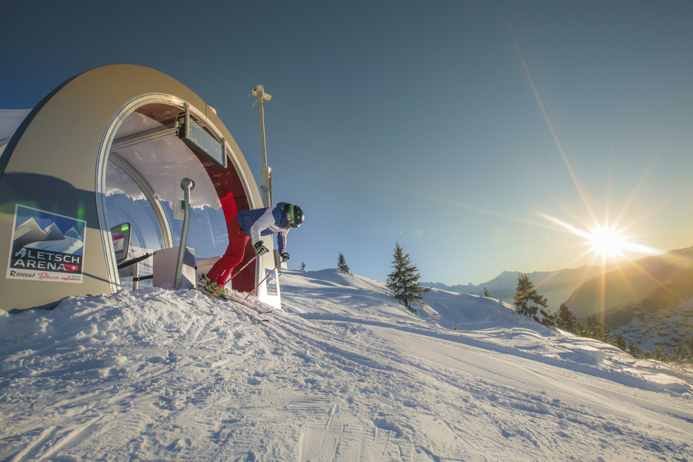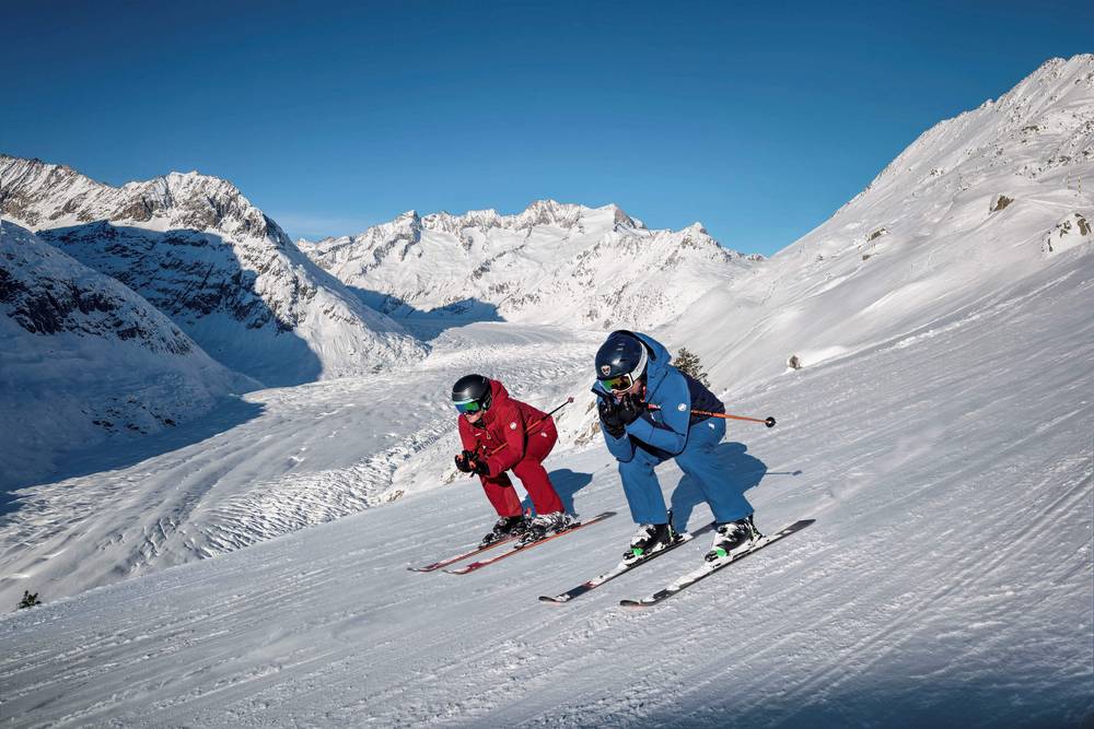 Kristallklare Luft, knirschender Schnee, Sonnenschein von früh bis spät und freie Sicht auf die schönsten Viertausender des Wallis – Aletsch Arena – das befreiendste Naturerlebnis der Alpen.