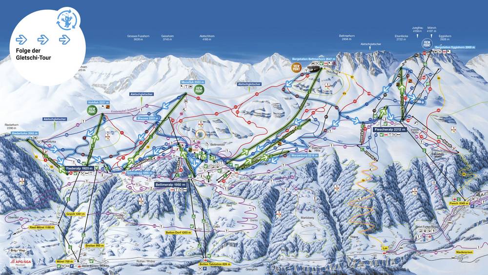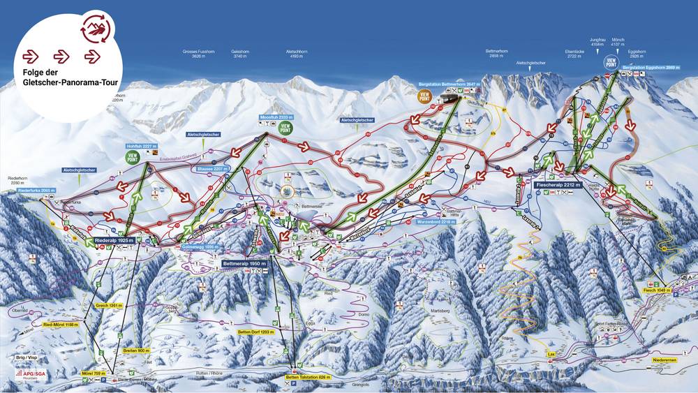 Die Gletscher Panorama Tour der Aletsch Bahnen wurde diesen Winter neu ausgearbeitet, mit dem Ziel Skifahrern und Snowboardern eine anspruchsvolle Rundtour durch das gesamte Skigebiet der Aletsch Arena zu bieten. Gäste können die schönsten Pisten und eindrucksvollsten View Points auf den Grossen Aletschgletscher entdecken.aletscharena.ch/gletscher-panorama-tour