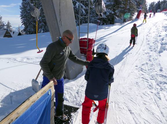 Das Personal im Skigebiet Alpe Cermis ist freundlich und an den Liften und Bahnen präsent. Kleinen Kindern wird beim Einsteigen geholfen.