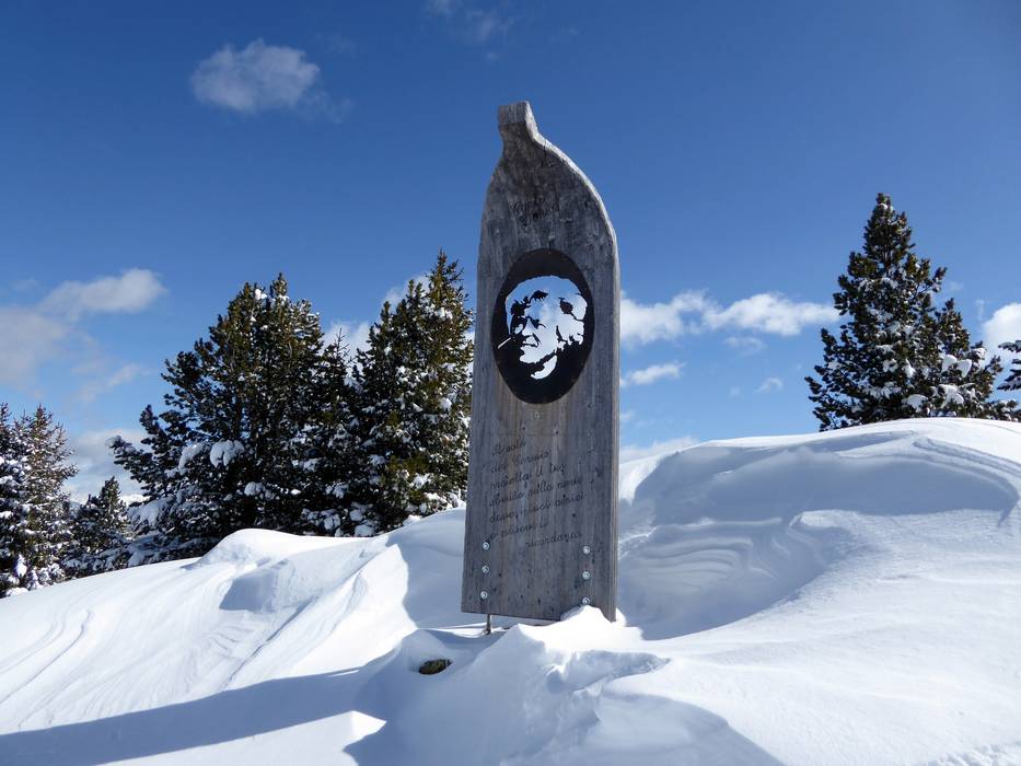 Blick von der Bergstation Richtung Dolomiten Das Denkmal am Gipfel des Paion widmet sich Carlo… Blick von der Alpe Cermis
