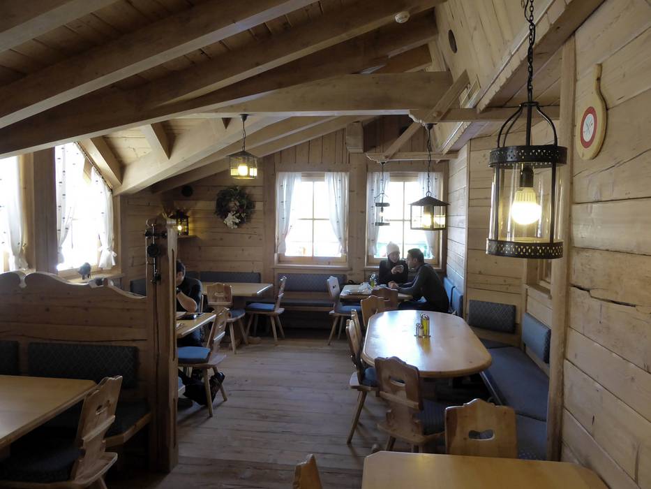 Die Baita Ciamp dele Strie ist eine recht große und gemütliche Hütte. Im unteren Teil werden über die Mittagszeit Speisen und Getränke serviert. Im oberen Teil der Hütte kann man den ganzen Tag einkehren. An der Bar erhält man sogar Augustiner vom Fass und viele weitere Getränke. Bei schönem Wetter lockt die Sonnenterrasse.