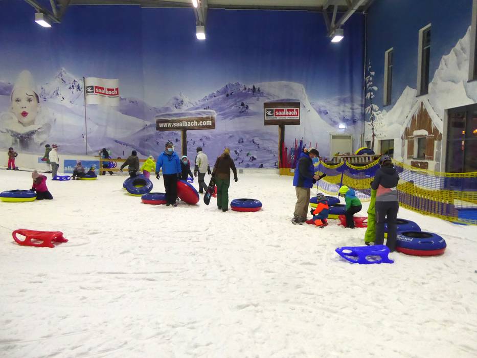 Ein Highlight sind die Rodel- und Tubingbahn im Alpenpark Neuss. Hier können es die Kleinen und Großen direkt neben den Pisten sausen lassen. Die Auffahrt erfolgt bequem mit dem Förderband.
