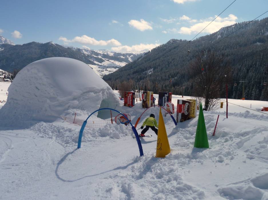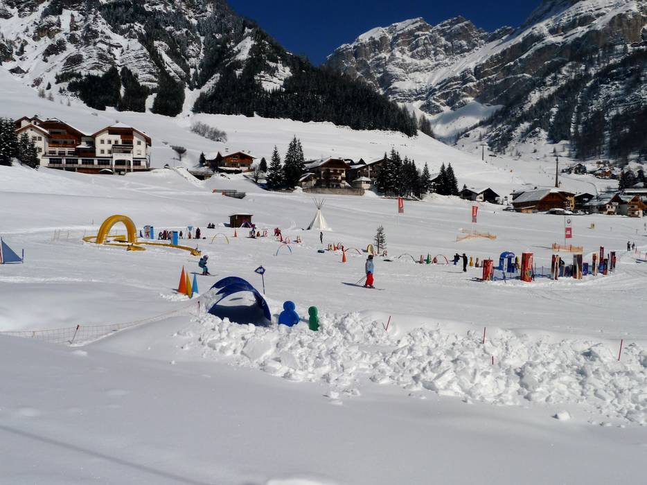 Direkt am Tellerlift Abrusè in Corvara befindet sich der ideale Platz für die Kleinen, um die ersten Schwünge zu probieren. Die Skischule steht mit vielen Skilehrern helfend zur Seite. Bei schlechtem Wetter können die Kinder im Skikinderland spielen und toben.