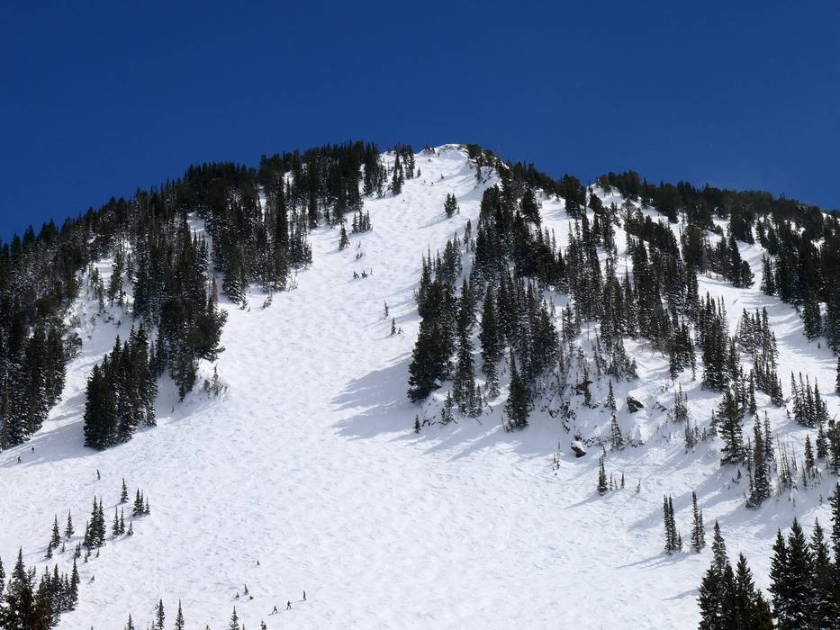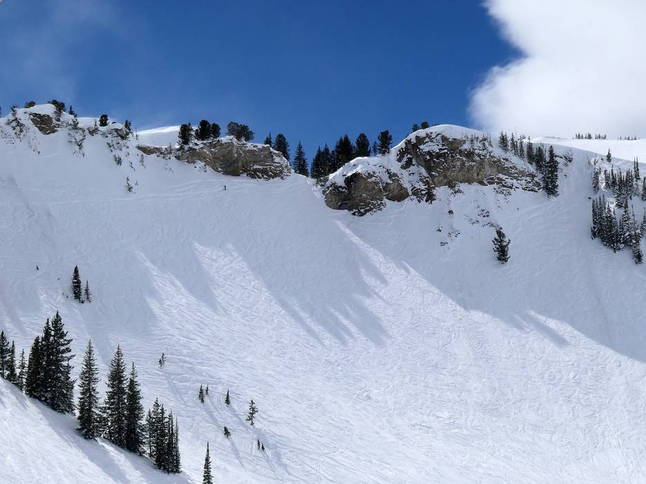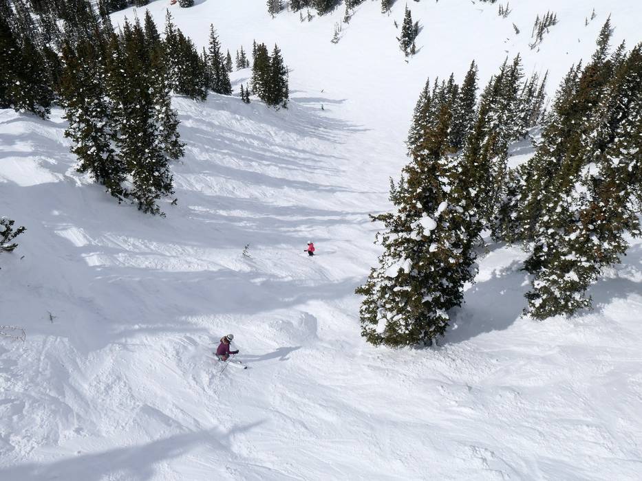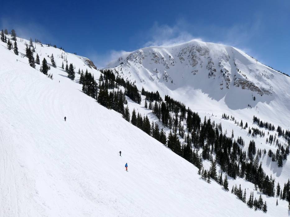 Steile, nicht präparierte Abfahrt mit Blick auf die Wildcat Base