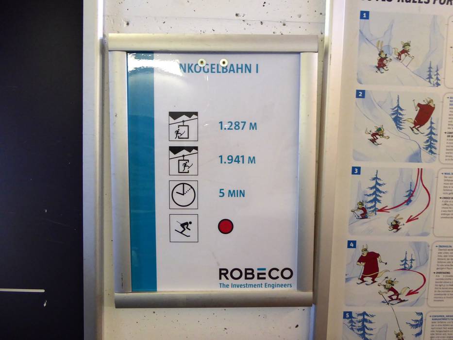 Informationstafeln mit Pistenstatus befinden sich prominent an den Kassen und an der Berg- und Mittelstation. Die Pisten sind alle mit Nummern versehen. Einzig an den Abzweigungen fehlen Hinweisschilder.