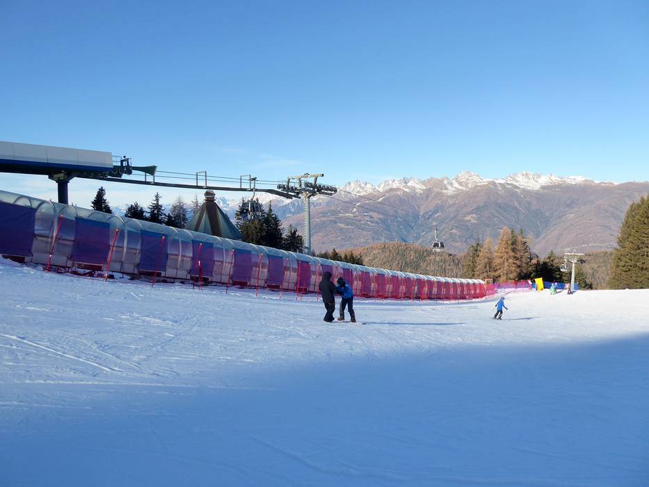 Aprica ist ein ideales Skigebiet für Anfänger. Im Talbereich Campetti, direkt am Ort Aprica, gibt es Förderbänder und Übungslifte. Auch oben im Skigebiet findet man Übungshänge und leichte Pisten. Die einzelnen Skigebietsteile können über leichte Pisten erreicht werden. Die Talstationen Baradello und Palabione erreicht man über leichte Talabfahrten. Nur nach Magnolta sollte man besser die Gondelbahn nehmen. Die Skischulen im Skigebiet Aprica bieten Kurse für alle Könnerstufen.