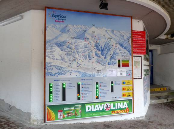 Orientierung (Pistenplan, Informationstafeln, Ausschilderung) und Sicherheit im Skigebiet Aprica