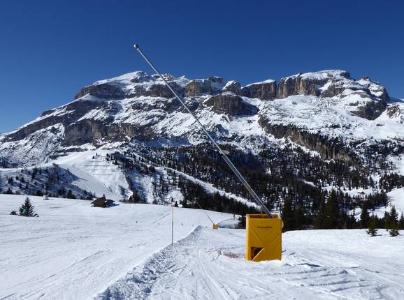 In Arabba können nahezu alle Abfahrten beschneit werden. Rund um Arabba liegen die Pisten alle über 1.600 m und sind damit sehr schneesicher. Die Talabfahrten sind meist vom ersten bis zum letzten Tag der Saison möglich. Auf der Marmolada reichen die Pisten bis auf 3.269 m. Sie führen sogar in Teilen über den Marmolada-Gletscher. Der Startpunkt zur Marmolada liegt in Malga Ciapela auf 1.446 m. Die Saisonzeiten sind in Arabba und auf der Marmolada meist identisch.