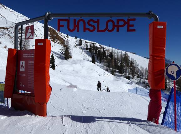 Das Skigebiet Arabba bietet eine Funslope mit einigen Snowparkelementen.