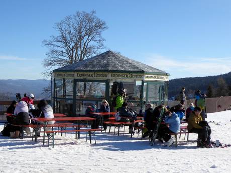 Der Arber Stadl liegt direkt an der Piste und lädt zu einem gemütlichen Einkehrschwung ein. Er ist auch auch beim Flutlichtskifahren geöffnet und ist der Pistentreff.