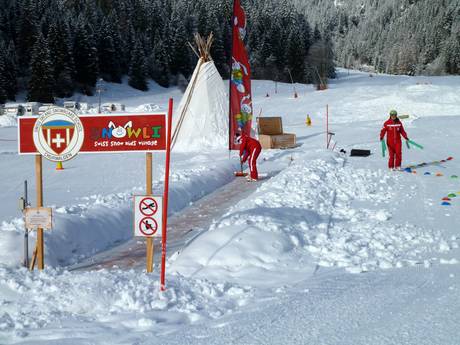Das Snowli-Kinderland der Skischule Churwalden befindet sich am Pradafenz-Schlepplift und verfügt über ein Förderband, ein Tipi und Übungsmaterialien.