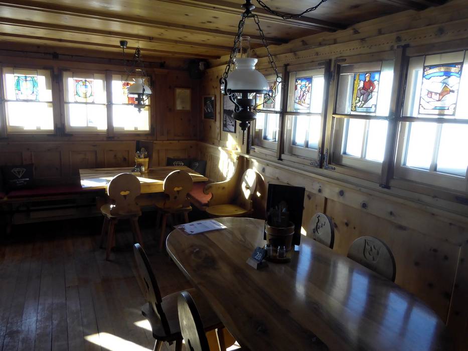 Exklusive Gerichte in einem internationalen Ambiente bietet die Mottahütte. An der Bar lässt sich zudem eine ausgewählte Weinkarte oder Champagner genießen.