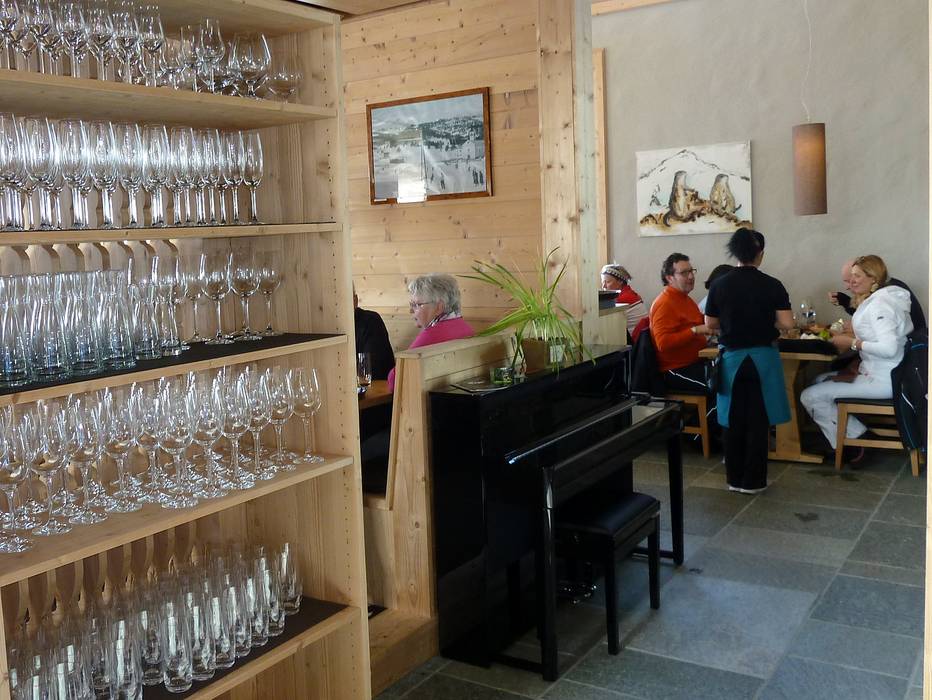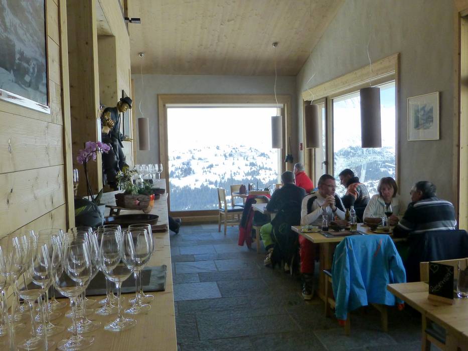 Das Bergrestaurant Scharmoin bietet neben einem SB-Bereich auch ein Grill-Restaurant im Obergeschoss mit Bedienung, ausgewählter Küche und Weinauswahl. Eine Reservierung vorab ist zu empfehlen.