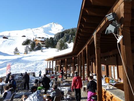 Vom Bedienrestaurant mit anspruchsvoller Küche und Weinauswahl über gemütliche kleine Hütten bis zum SB-Restaurant sind alle Kategorien der Einkehrmöglichkeiten im gesamten Skigebiet verteilt. Im Allgemeinen orientiert sich die Küche aber an typischen Graubündner Spezialitäten.