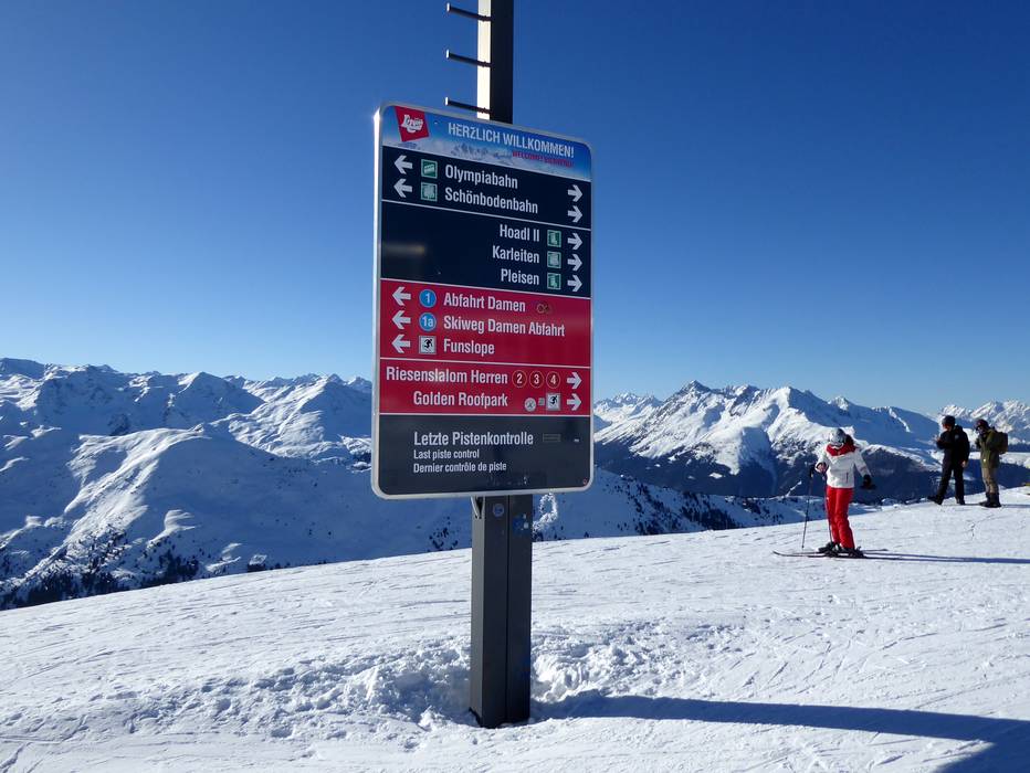Orientierung (Pistenplan, Informationstafeln, Ausschilderung) und Sicherheit im Skigebiet Axamer Lizum
