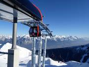 Die neue Hoadlbahn II ersetzt die 2er-Sesselbahn Hoadl II und führt von der Mittelstation auf 1981 m, unterhalb der Sunnalm, hinauf auf’s Sonnenplateau Hoadl. Die moderne 10er-Kabinenbahn führt in 2 Sektionen von der Talstation am Parkplatz über eine Mittelstation hinauf zum Hoadl-Haus (2.340 m). Bei der Auffahrt genießt man einen wunderschönen Blick auf Innsbruck und die Kalkkögel. Somit sind die herrlichen Pisten im Skigebiet Axamer Lizum noch bequemer und schneller erreichbar.
