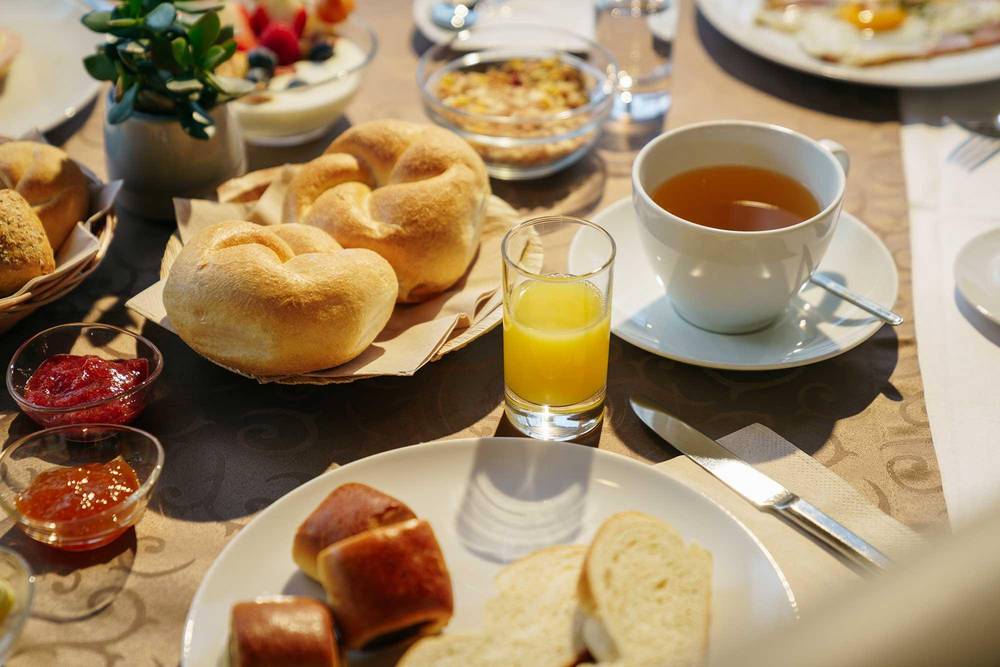 Unsere Halbpension umfasst ein reichhaltiges Frühstücksbuffet und ein Vier-Gang-Wahlmenü am Abend (auf Wunsch auch vegetarisch oder Pizzas).
