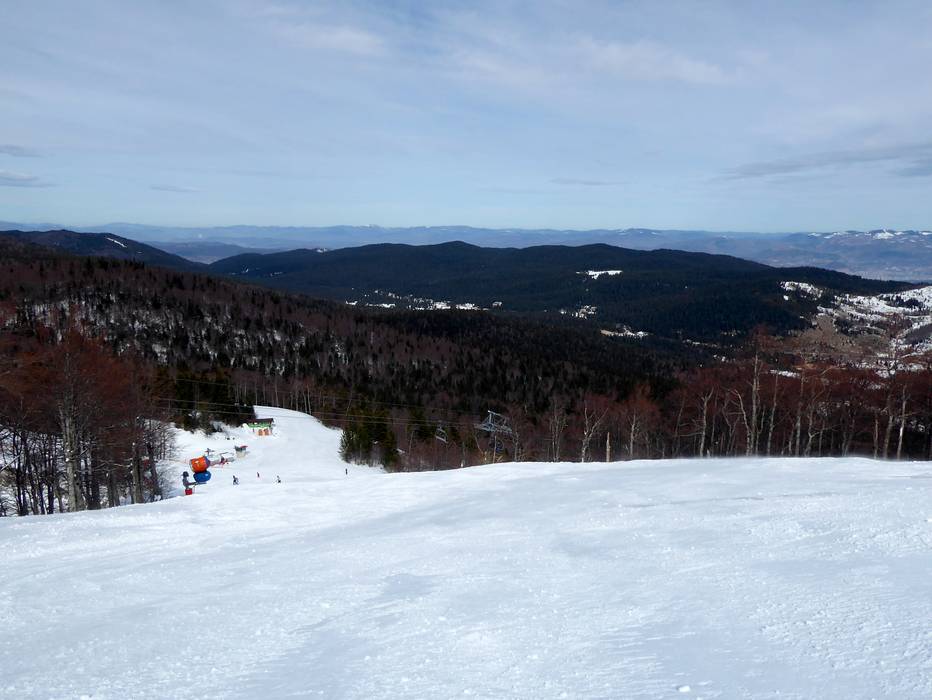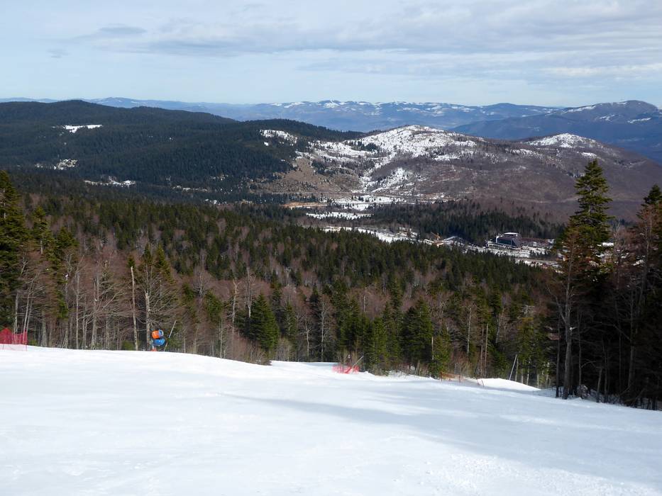 Blick von den Pisten über das Dinarische… Blick zur Talstation Babin Do