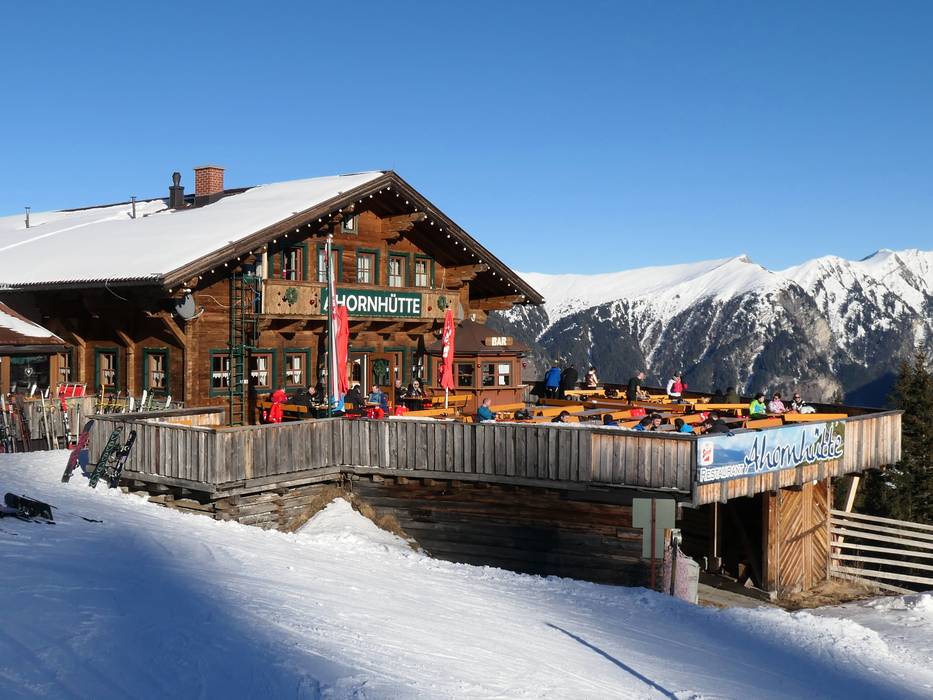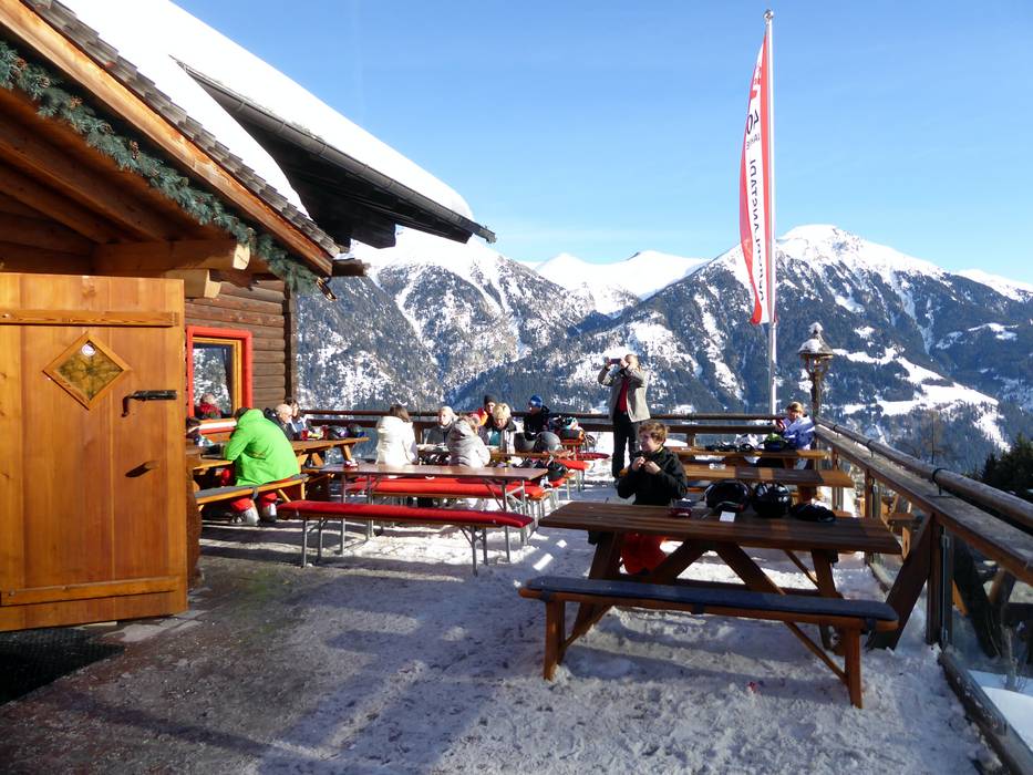Das urige Restaurant und die große Sonnenterrasse bieten einen gelungenen Einkehrschwung. Ein besonderer Tipp auf der Angerblick Hütte ist der Alpenkebap vom marinierten Schopfbraten.