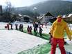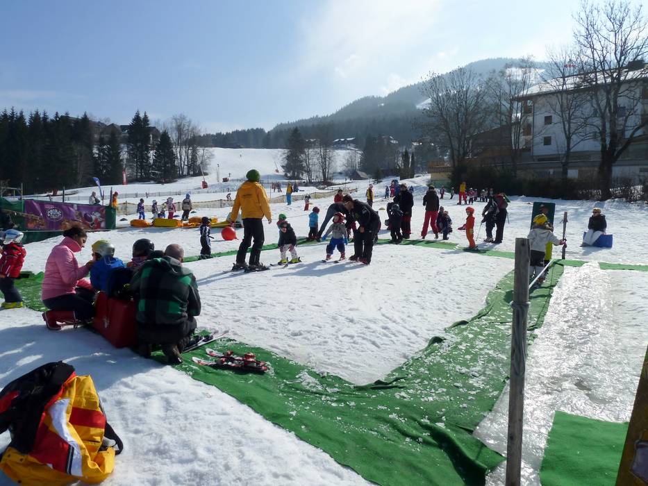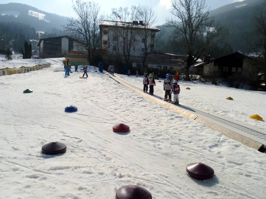 An der Talstation der Kaiserburgbahn befindet sich das Kinderland der Skischule Brunner mit zwei SunKid Förderbändern.