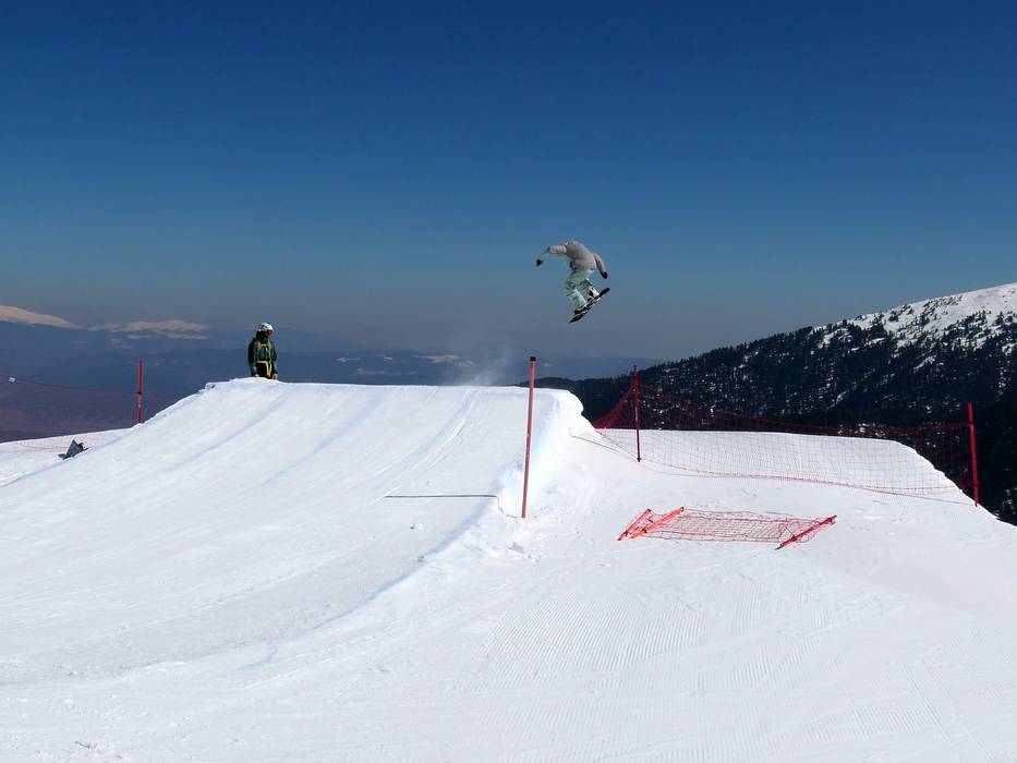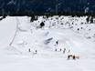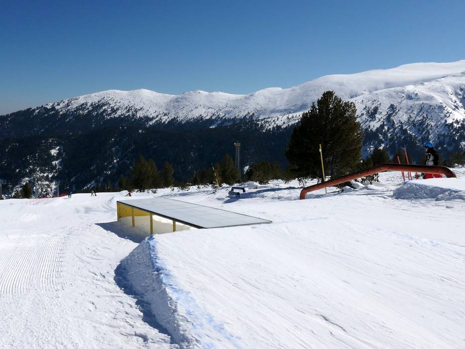 Der Snowpark liegt sonnenverwöhnt an der Sesselbahn Plato. Große und kleine Kicker, Boxen und Rails sorgen für Adrenalin bei Einsteigern und Profis.