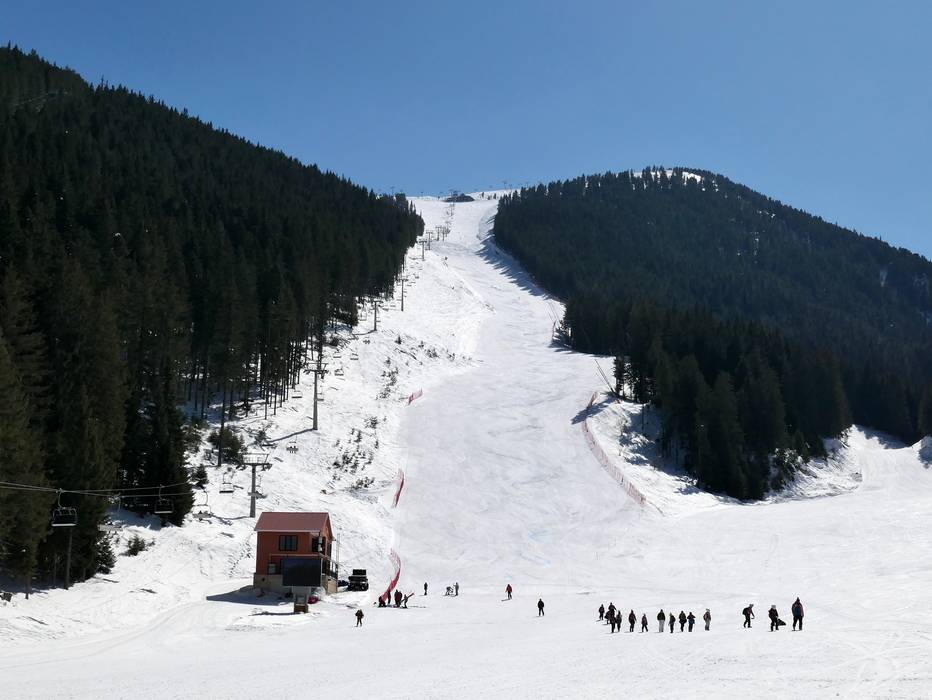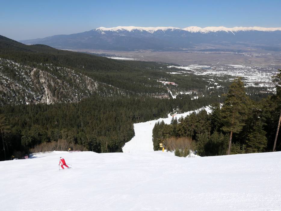Eine sehr leichte und sehr lange Piste (Ski road №1) führt bis ins Tal nach Bansko.