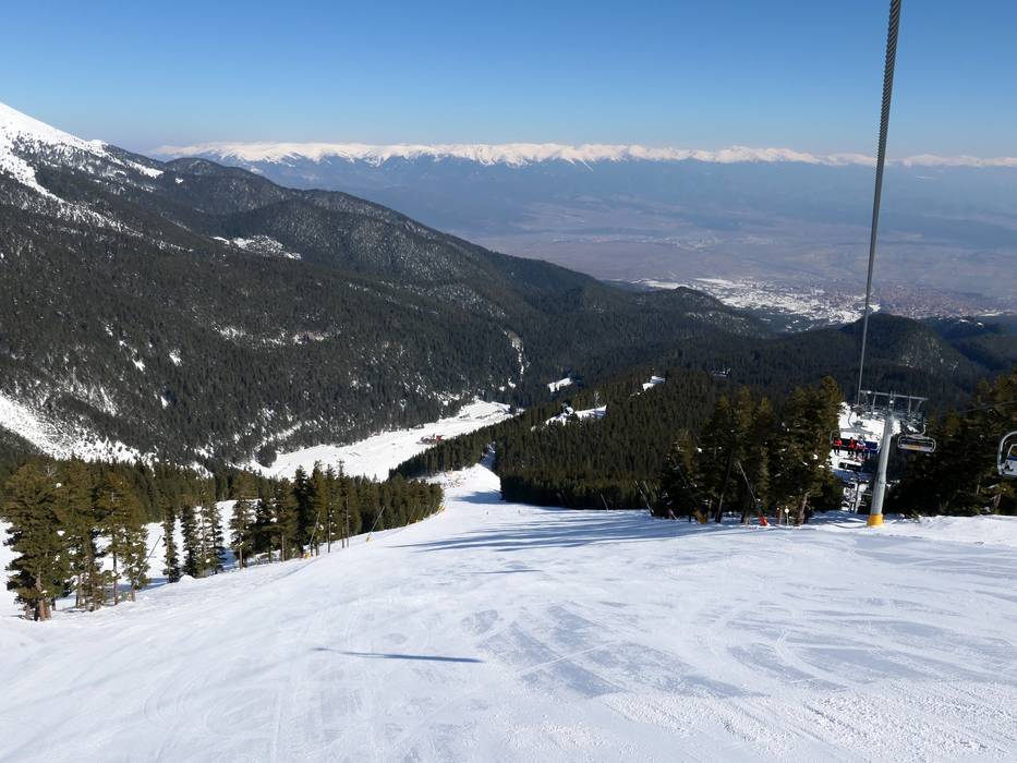 Vom höchsten Punkt im Skigebiet kann man durchgängig über leichte Pisten bis ins Tal nach Bansko fahren. Allein die sehr leichte Talabfahrt (Ski road №1) an der Gondelbahn ist ca. 8 km lang. Insgesamt ist es eine der längsten Abfahrten der Welt.