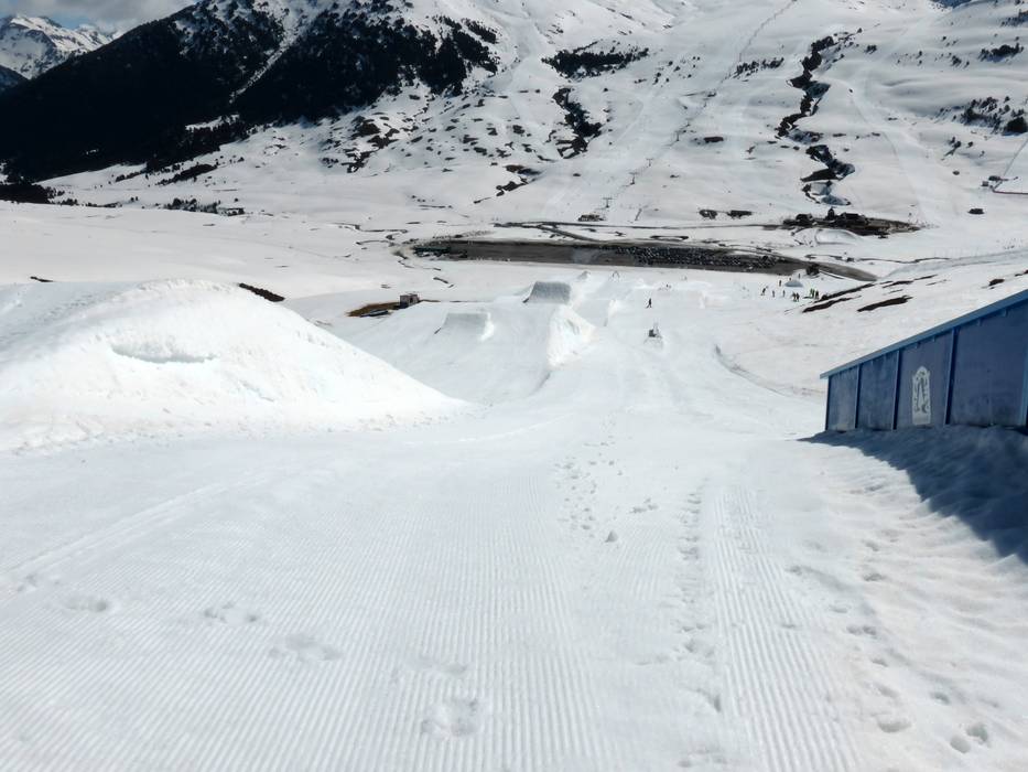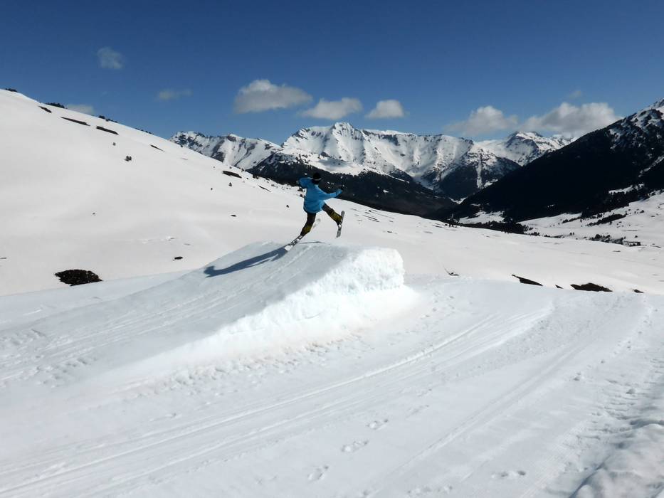 Der Snowpark in Beret liegt an der Sesselbahn Blanhiblar und bietet viele Jumps und Obstacles.