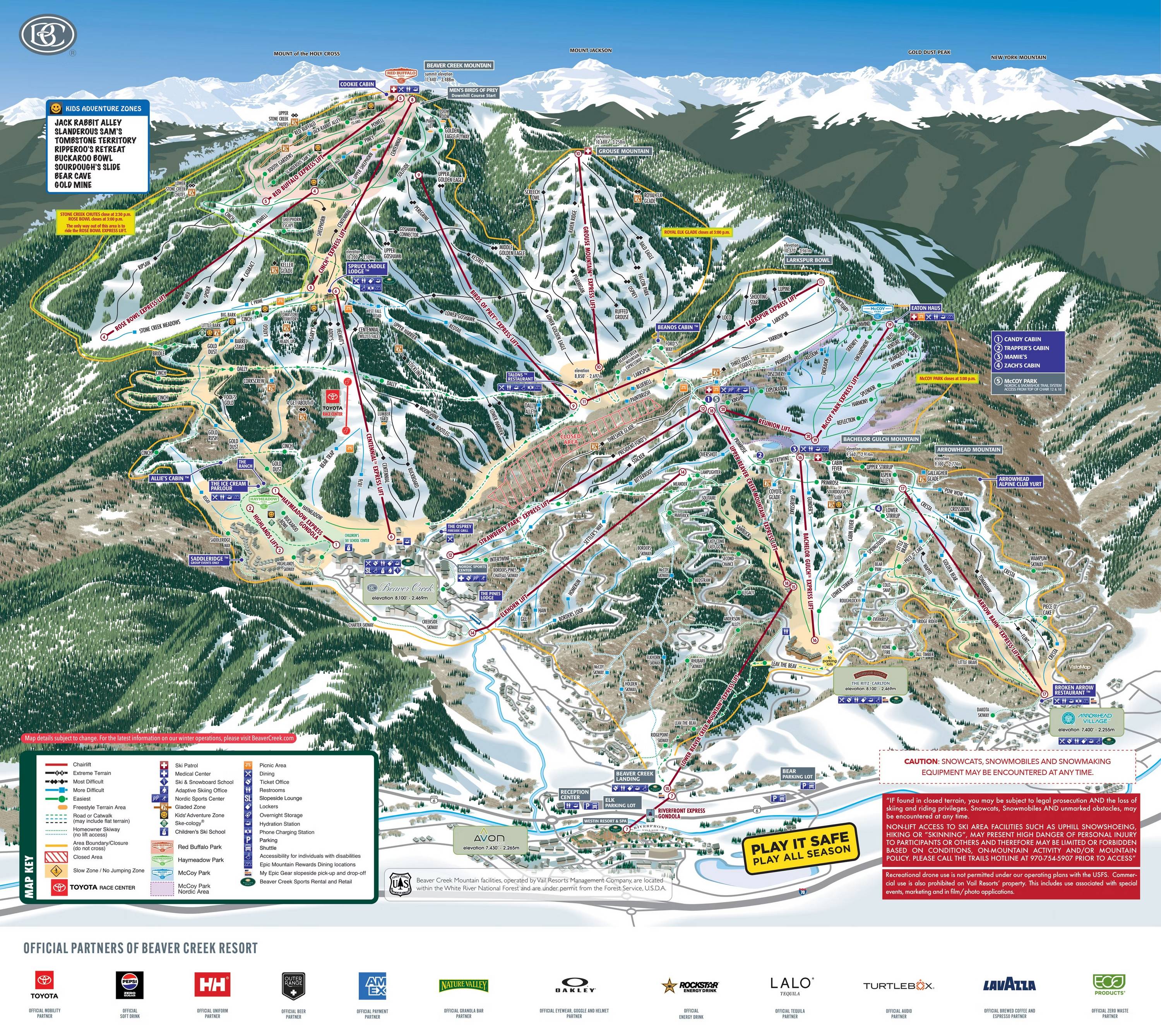 Orientierung (Pistenplan, Informationstafeln, Ausschilderung) und Sicherheit im Skigebiet Beaver Creek