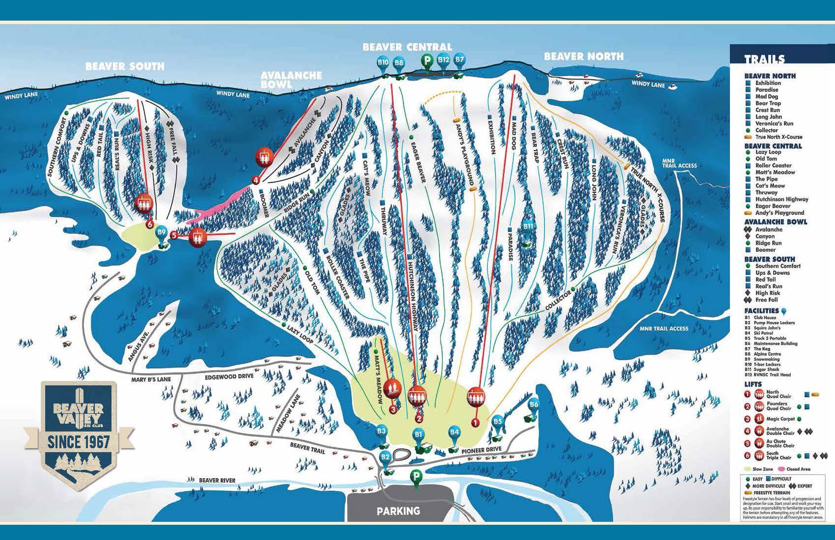 Pistenplan Beaver Valley Ski Club Saison 2024/2025