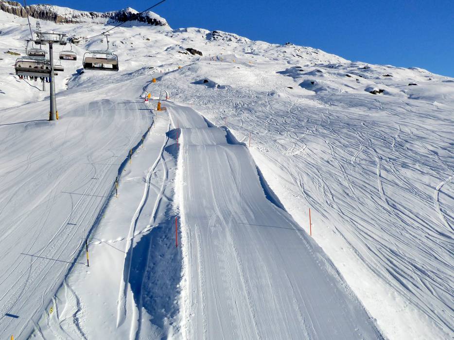 Die Wellenbahn befindet sich an der leichten Piste Nr. 10 Aletsch. Hier locken tolle Wellen und auch der ein oder andere Sprung.