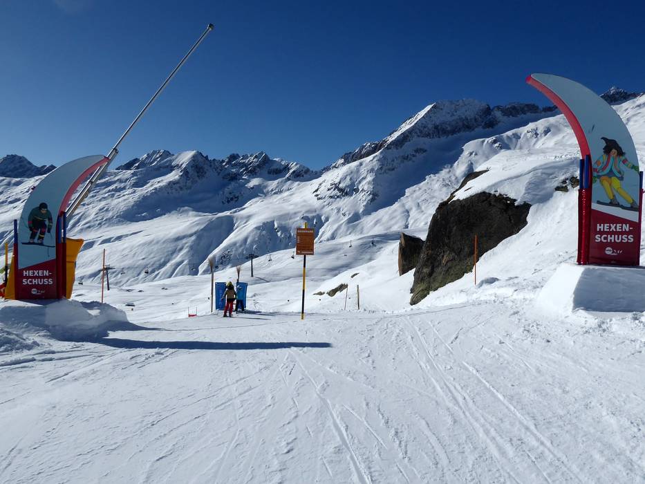 Die Rennstrecke Hexenschuss befindet sich an der leichten Piste Nr. 10 Aletsch. Hier kann man seine Abfahrtszeit messen und einen kleinen Wettkampf mit der Familie austragen.