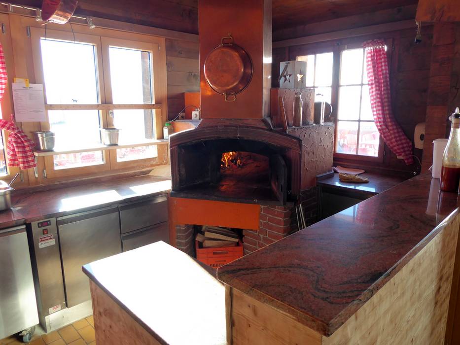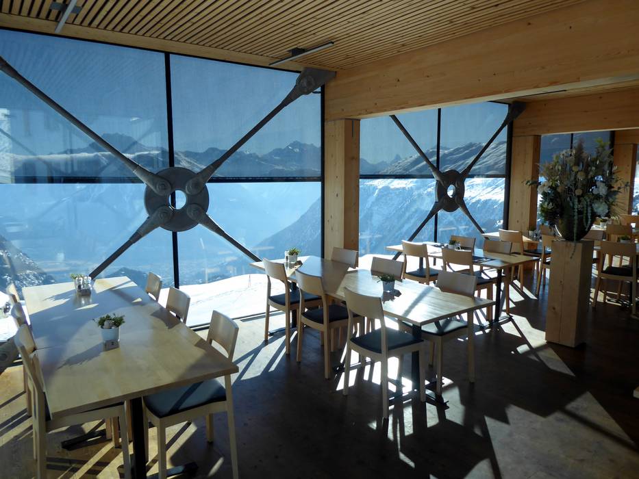 Das Aletschhorn bietet frische Pizza aus dem Holzofen. Sehr beliebt sind auch die verschiedenen Rösti. Die Sonnenterrasse bietet einen grandiosen Blick über die Walliser Berge bis ins Tal.