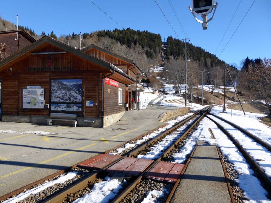 Der Bahnhof Fürgangen-Bellwald liegt an der Matterhorn-Gotthard-Bahn. Von dort geht es mit der Seilbahn direkt nach Bellwald. - Skibusse