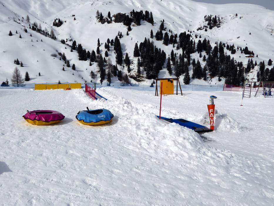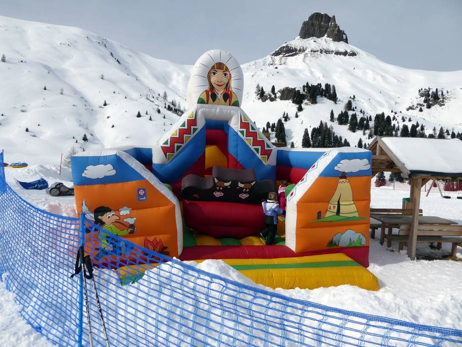 Das Indian Village befindet sich an der Bergstation Ciampac. Hier gibt es Hüpfburgen, eine Tubingbahn und viele Spielgeräte. Ideal für die Kleinen zum Spielen. Ski dürfen aber nicht mit in das Indian Village genommen werden.