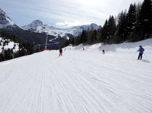 Das Skigebiet liegt direkt an der bekannten Sella Ronda und ist somit an über 500 Pistenkilometer angeschlossen.