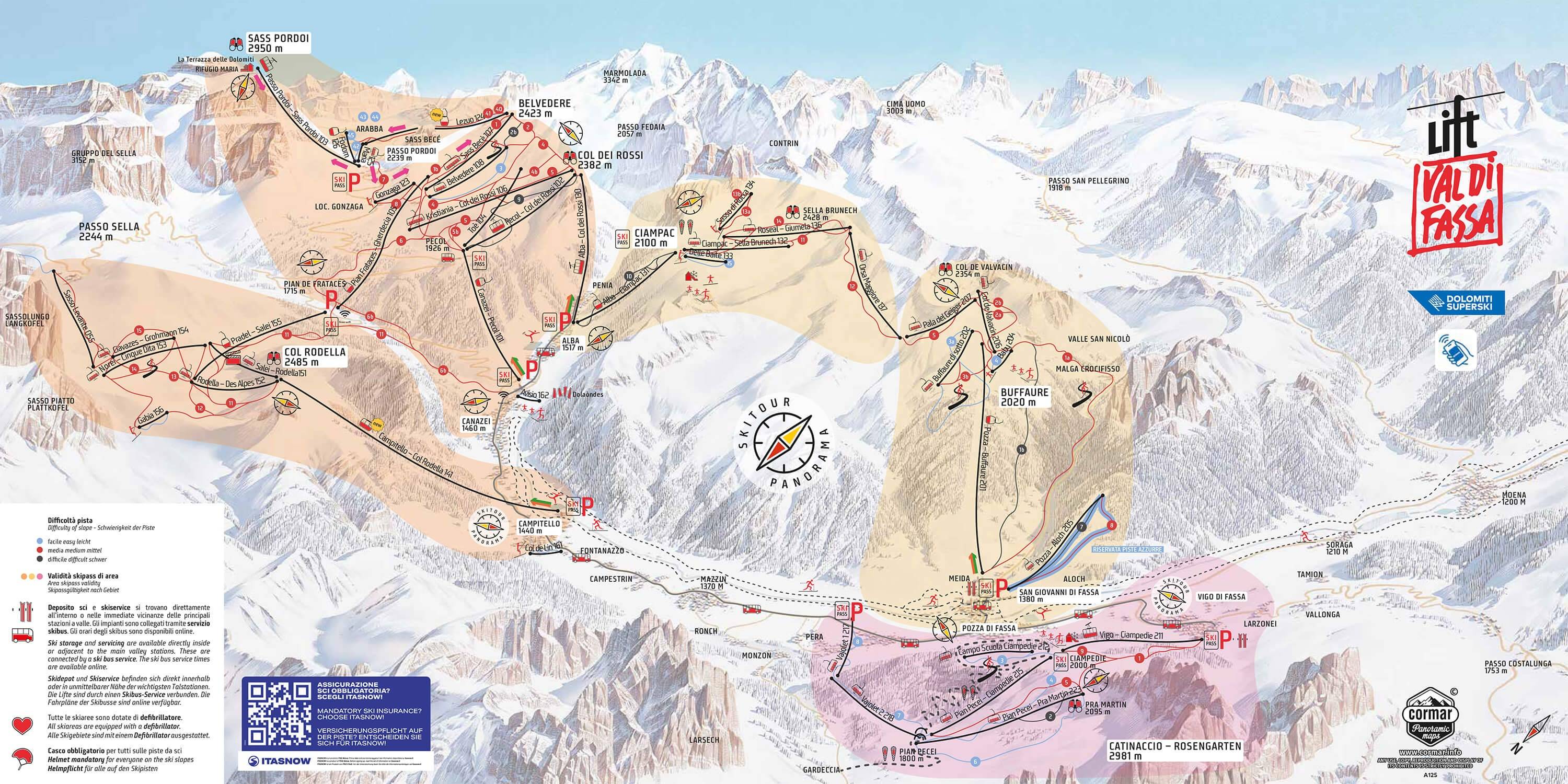 Pistenplan Belvedere/Col Rodella/Ciampac/Buffaure – Canazei/Campitello/Alba/Pozza di Fassa Saison 2025/2026
