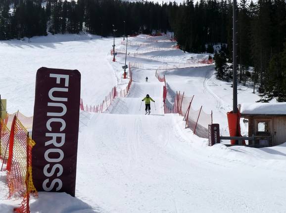 Auf der Bergeralm gibt es keinen klassischen Snowpark. An der Mittelstation begeistern jedoch ein Funcross und eine Funslope.