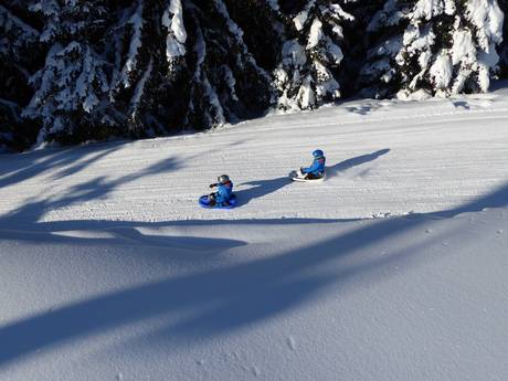 Das Berwangertal ist perfekt für Familien geeignet. In Berwang gibt es eine Kinderbetreuung ab drei Jahren und in Berwang und Bichlbach eigene Kinderareale der Skischulen, wo Bobo der Pinguin für viel Spaß bei den ersten Skiversuchen sorgt. Gerade in Berwang rund um den Einstieg zum kindergesicherten Egghof Sun Jet und der Oberen Karbahn I am B-Active Center stehen eine attraktive Auswahl an Übungspisten für die Kleinsten bereit, die sich ganz sanft steigern. Auch das Lifteln kann man hier mit Förderband, Seillift, Schlepplift und Sesselbahn perfekt üben. Am nahen Braunilift in Berwang gibt es zusätzlich ein abgeschiedenes und ruhiges Anfängerareal, um die ersten Schwungübungen noch zu vertiefen. Am Thaneller wartet ein kostenfreies Förderband. Rodelbahnen runden das Angebot ab.